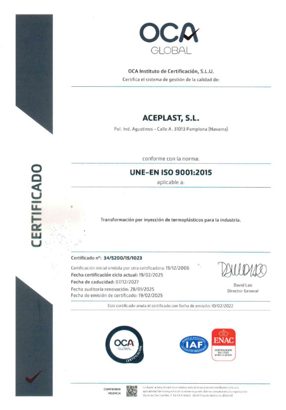 En 2001 obtuvimos el certificado ISO 9001:2000, que ha sido renovado anualmente, apoyándonos en una filosofía de mejora continua y orientación hacia la satisfacción de los clientes.